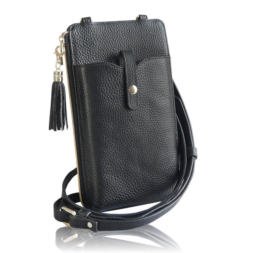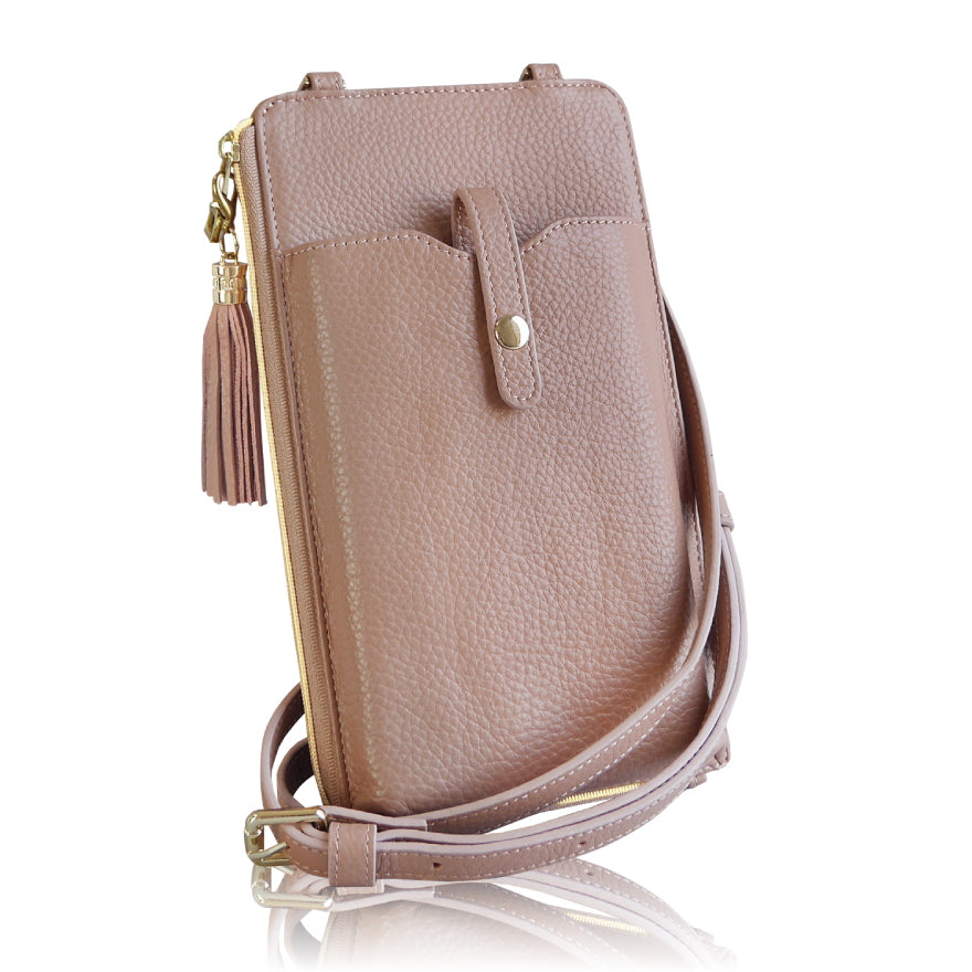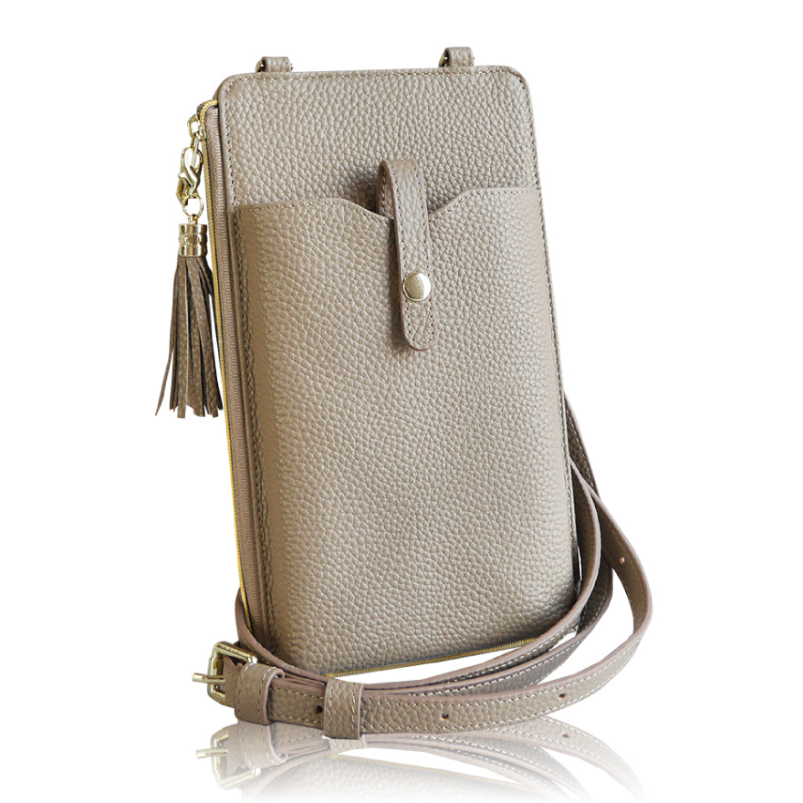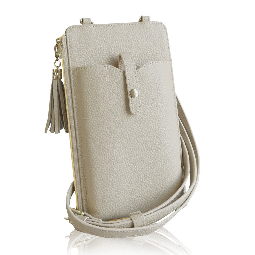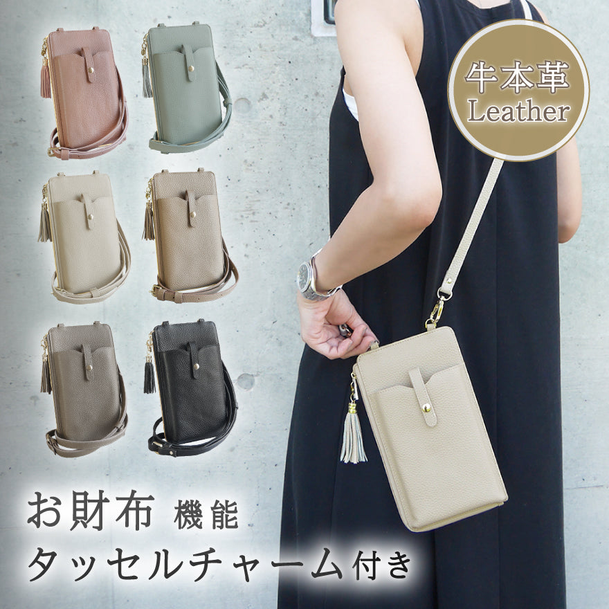 【タッセル付き】本革/お財布機能付き スマホショルダー